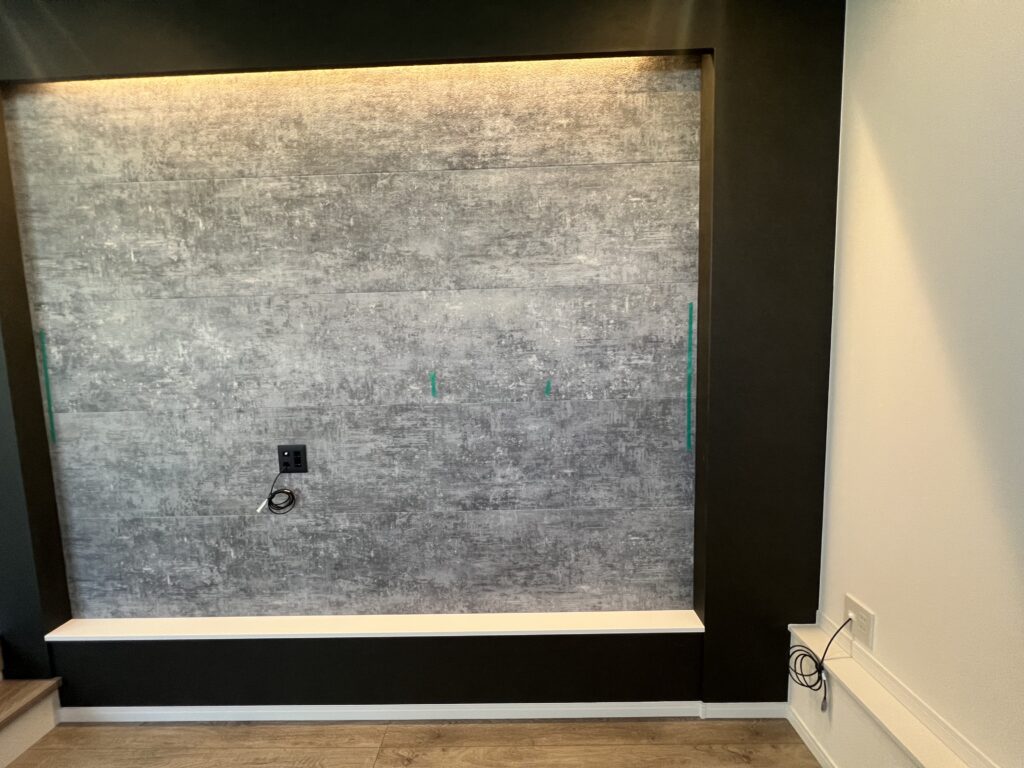 こんばんは!堺市の一軒家に壁掛けテレビの工事をしてきました!今回はこちらの壁面に設置していきます!まずは下地を探します!建物図面を見たり道具を使って下地を探したら取付位置を決めると・・・設置完了!コン